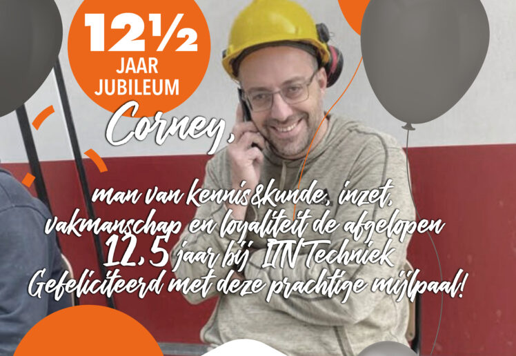 Het is niet elke dag dat je een collega mag feliciteren met zo’n mooie mijlpaal: 12,5 jaar in dienst! Corney Hoksbergen, onze Hoofdmonteur Elektrotechniek, heeft deze indrukwekkende periode bereikt. Dit konden we natuurlijk niet ongemerkt voorbij laten gaan.