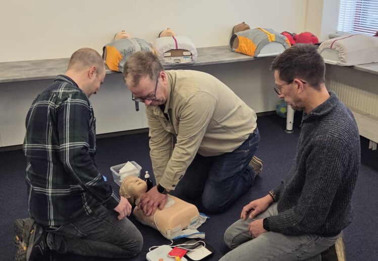 Tijdens de training oefenen we reanimatie en het inzetten van een AED. Daarnaast doorlopen we verschillende scenario’s rondom brand en ontruiming: een collega die onwel wordt, een beginnende brand of een pand dat veilig en gestructureerd ontruimd moet worden.
