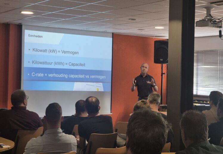 Arie de Blois van Beter Duurzaam nam ons mee in de techniek, de regelgeving en de praktijk van energieopslag. Van PGS37-1 tot UL9540A en van installatie tot beheer: alles kwam aan bod.
