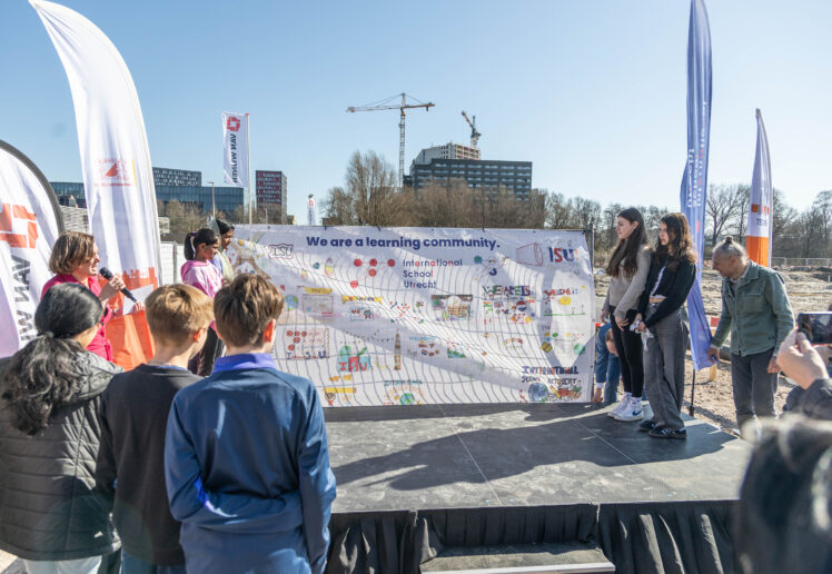 Op woensdag 19 maart vierden we een bijzondere mijlpaal: het officiële startsein voor de bouw van het nieuwe schoolgebouw van International School Utrecht (ISU). Samen met wethouder Eelco Eerenberg (Onderwijs), de gemeente Utrecht, architecten, bouwpartners en natuurlijk de leerlingen en medewerkers van ISU stonden we stil bij dit feestelijke moment. Met deze start komt de realisatie van een modern, duurzaam en toekomstbestendig schoolgebouw op het Utrecht Science Park een stap dichterbij.