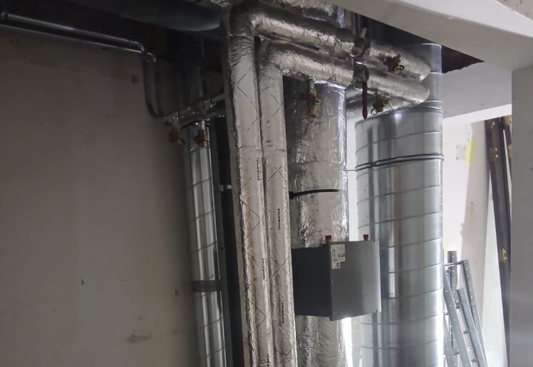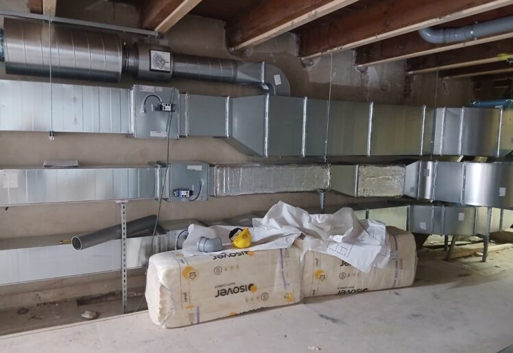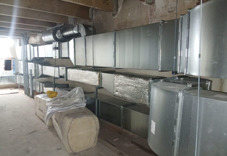 De uitvoering is inmiddels volop in gang. Op werktuigbouwkundig vlak zijn delen van de luchtkanalen, hoofdleidingen en de sanitaire ruwbouw al aangebracht. Ook de luchtbehandelingskasten met warmtepompen maken onderdeel uit van deze volgende fase van het project.