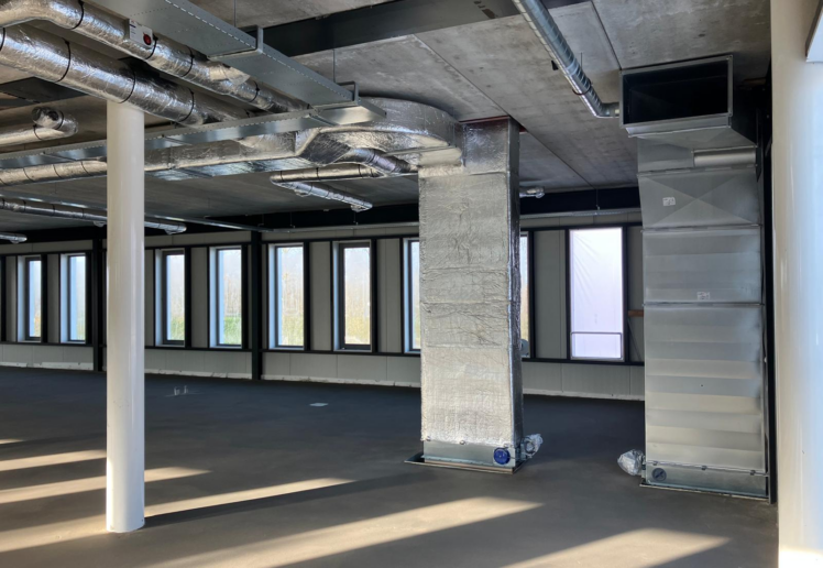 Verder zijn de luchtkanalen en kabelgoten inmiddels aangebracht op de 1e, 2e en 3e verdieping, en zelfs een deel van de begane grond is al voorzien. Deze installaties vormen de basis voor een optimaal binnenklimaat en een robuuste infrastructuur die ons pand niet alleen functioneel, maar ook toekomstbestendig maakt.