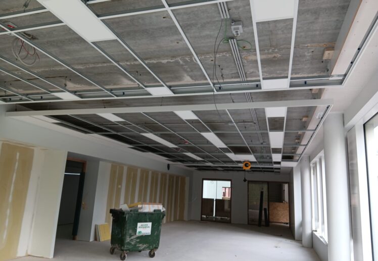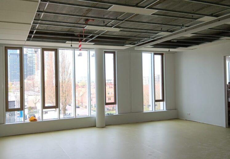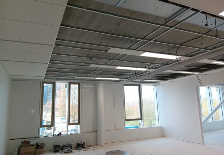De ruwbouwfase van het project is afgerond en de afbouw is in volle gang. We zijn bezig met het plaatsen van de plafondrasters, waarna de afbouw in het verlaagd plafond volgt. Ook op het dak zijn de luchtbehandelingskasten en warmtepompen aangesloten. Daarmee krijgt het gebouw installatietechnisch steeds meer vorm.